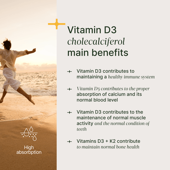 - 2000 IE Vitamin D3 in einer Kapsel – eine Konzentration, die für die ganzjährige Einnahme geeignet ist